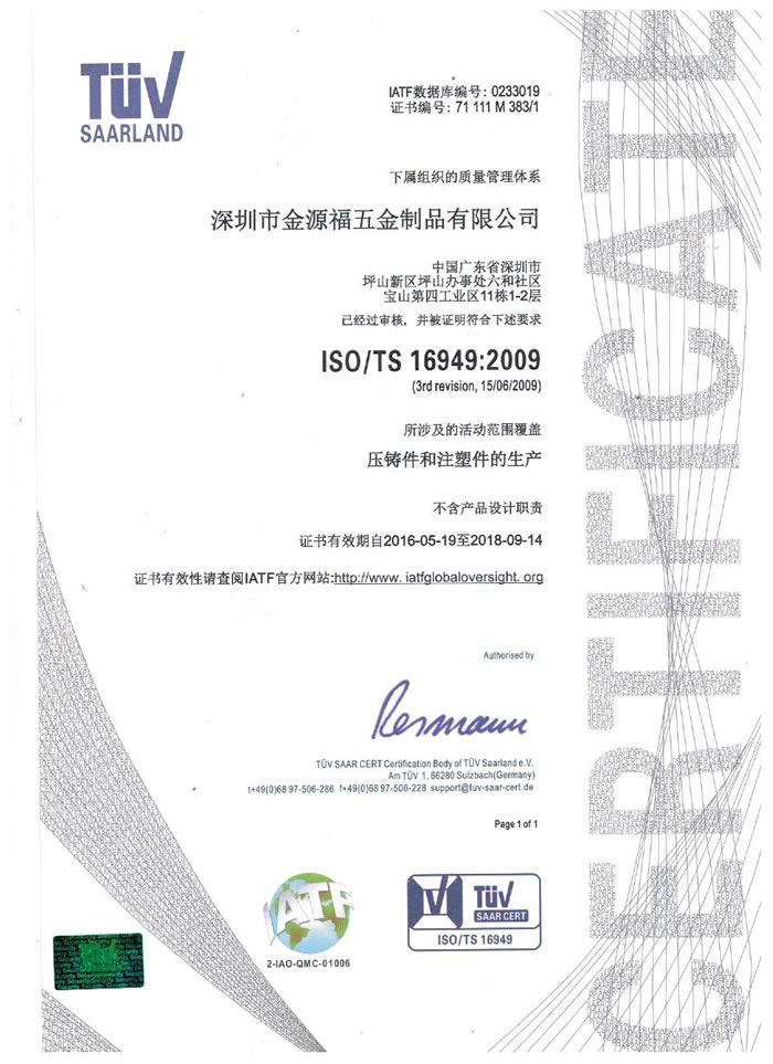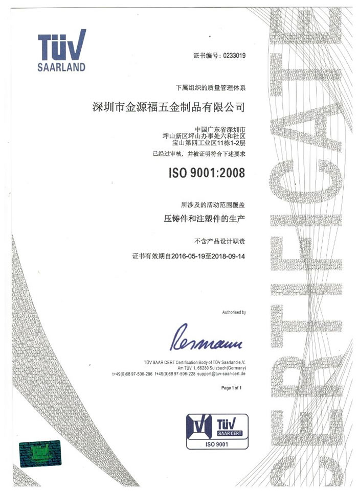深圳市金源福五金制品有限公司成立于2003年。公司擁有8000多平方米生產(chǎn)廠地、開(kāi)發(fā)與管理精英人才、技術(shù)專業(yè)、設(shè)備精良、交通便利、服務(wù)周全、具體設(shè)計(jì)、開(kāi)發(fā)、制模、出樣、生產(chǎn)到成品出貨一體化模式生產(chǎn)廠家。已通過(guò)ISO9001:2008ISO1440/TS16949:2009國(guó)際質(zhì)量體系認(rèn)證。專業(yè)生產(chǎn)鋅合金壓鑄、鋁合金壓鑄產(chǎn)品、汽車(chē)配件、汽車(chē)后視鏡支架、車(chē)載導(dǎo)航散熱器、LED散熱器、LED燈罩、數(shù)碼電子五金結(jié)構(gòu)件、家具五金裝飾件、標(biāo)牌(LOGO)等五金壓鑄產(chǎn)品。